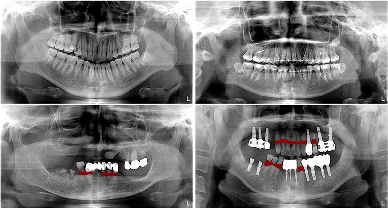 • کنترل استخوان پس از کاشت ایمپلنت: پیگیری رادیوگرافیک منظم و رعایت نظافت تخصصی (مسواک و نخ دندان مخصوص) برای جلوگیری از عفونت اطراف ایمپلنت (پری ایمپلنتیت) و فشار بیش از حد (دندان‌قروچه).